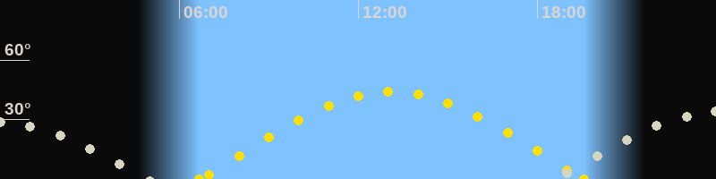 | Höchster Sonnenstand (Kulmination) | 13:07 Uhr (h = 44.1°) |