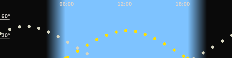 | Sonnenaufgang | 06:45 Uhr im Osten (αAz = 83.9°) |