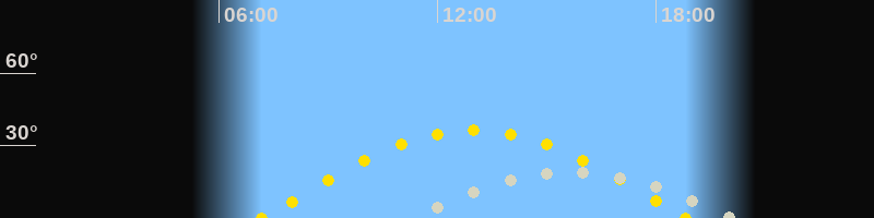 | Höchster Sonnenstand (Kulmination) | 13:00 Uhr (h = 36.3°) |