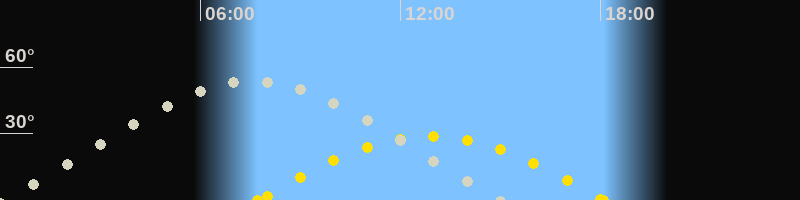 | Höchster Stand (Kulmination) | 07:35 Uhr (h=53.9°) |