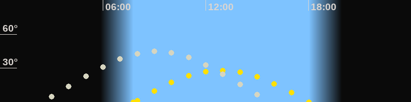 | Höchster Stand (Kulmination) | 09:07 Uhr (h=45.3°) |