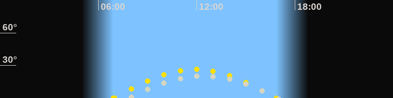 | Höchster Sonnenstand (Kulmination) | 11:54 Uhr (h = 26.4°) |