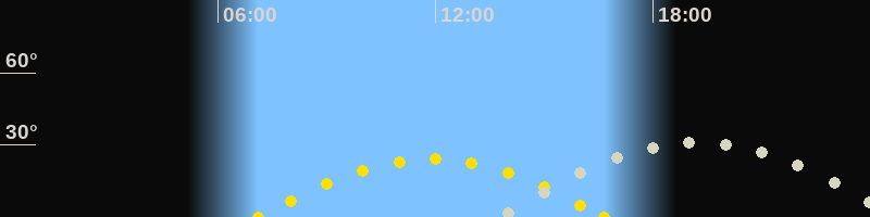 | Höchster Stand (Kulmination) | 19:08 Uhr (h=30.8°) |
