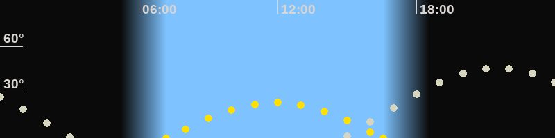 | Höchster Sonnenstand (Kulmination) | 11:53 Uhr (h = 23.2°) |