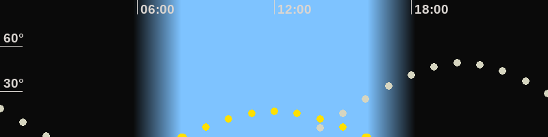 | Höchster Sonnenstand (Kulmination) | 12:00 Uhr (h = 17°) |