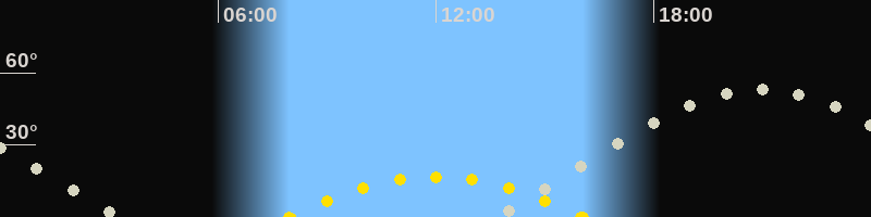 | Höchster Sonnenstand (Kulmination) | 12:00 Uhr (h = 16.9°) |