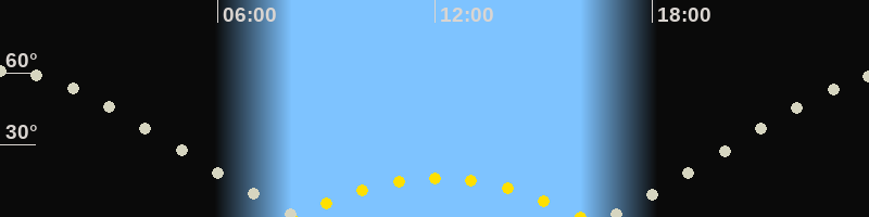 | Höchster Sonnenstand (Kulmination) | 12:03 Uhr (h = 16.3°) |