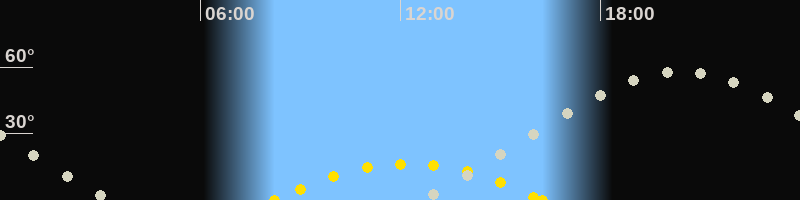 | Höchster Sonnenstand (Kulmination) | 12:14 Uhr (h = 16.5°) |