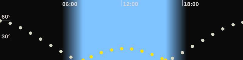 | Höchster Sonnenstand (Kulmination) | 12:16 Uhr (h = 17.1°) |