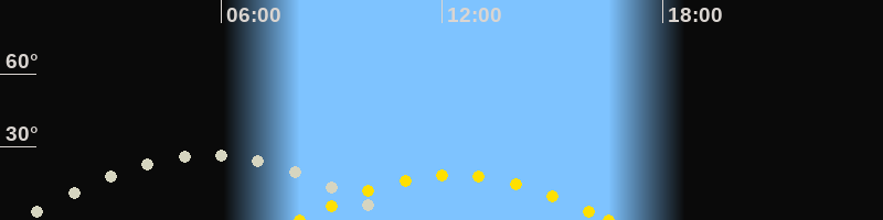 | Höchster Sonnenstand (Kulmination) | 12:19 Uhr (h = 18.4°) |