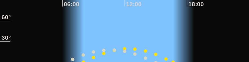 | Höchster Sonnenstand (Kulmination) | 12:21 Uhr (h = 19.4°) |