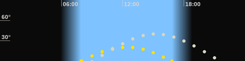 | Höchster Sonnenstand (Kulmination) | 12:22 Uhr (h = 20.6°) |