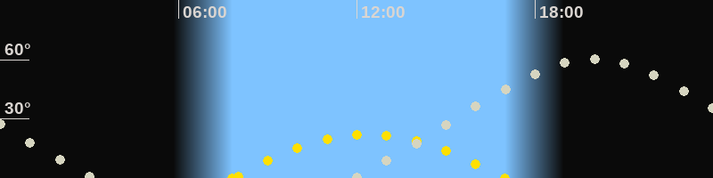 | Höchster Sonnenstand (Kulmination) | 12:23 Uhr (h = 22.2°) |