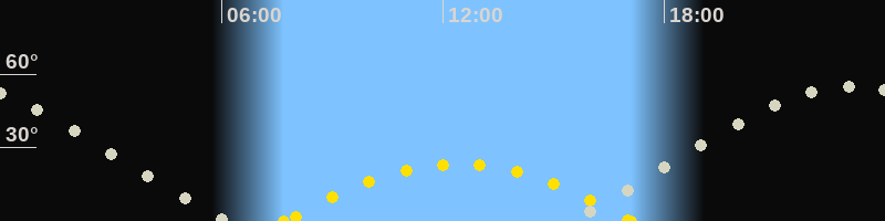 | Höchster Sonnenstand (Kulmination) | 12:24 Uhr (h = 23.4°) |