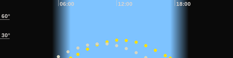 | Höchster Sonnenstand (Kulmination) | 12:24 Uhr (h = 28°) |