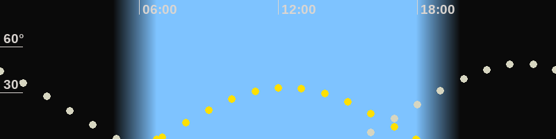 Höchster Sonnenstand (Kulmination)12:21 Uhr (h = 33.7°)