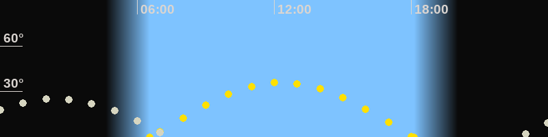 Höchster Sonnenstand (Kulmination)12:20 Uhr (h = 36°)