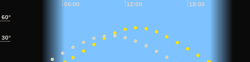 | Sonnenaufgang | 06:12 Uhr im Osten (αAz = 72.1°) |