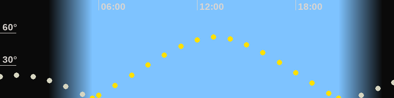 | Höchster Sonnenstand (Kulmination) | 13:06 Uhr (h = 56.1°) |