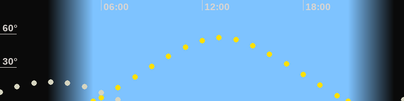 Höchster Sonnenstand (Kulmination)13:06 Uhr (h = 56.7°)