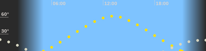 | Höchster Sonnenstand (Kulmination) | 13:08 Uhr (h = 61.6°) |