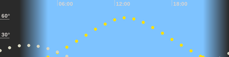Höchster Sonnenstand (Kulmination)13:09 Uhr (h = 62°)