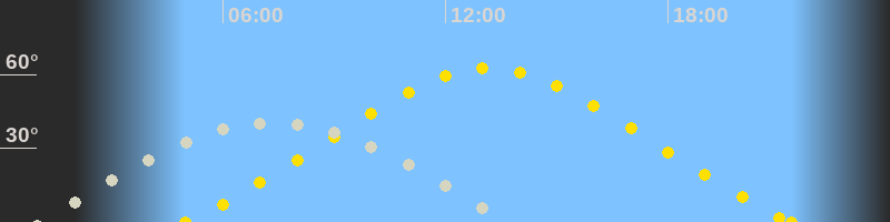 | Höchster Stand (Kulmination) | 07:14 Uhr (h=40°) |