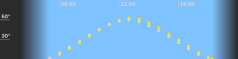| Höchster Sonnenstand (Kulmination) | 13:11 Uhr (h = 62.7°) |