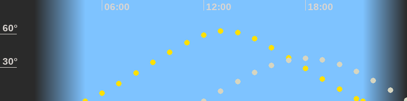 | Höchster Sonnenstand (Kulmination) | 13:13 Uhr (h = 62.6°) |
