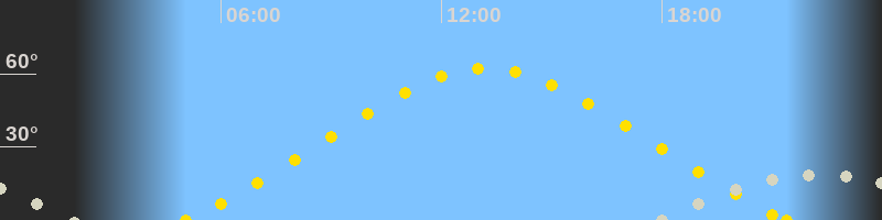 | Höchster Sonnenstand (Kulmination) | 13:14 Uhr (h = 62.4°) |