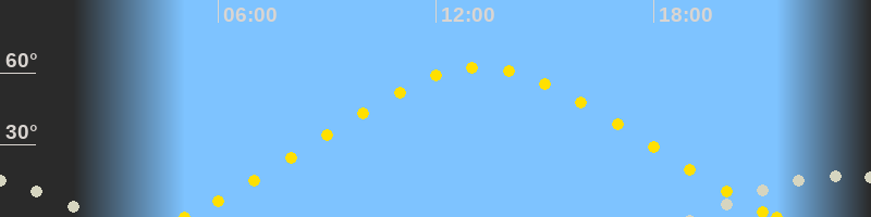 | Höchster Sonnenstand (Kulmination) | 13:14 Uhr (h = 62.3°) |