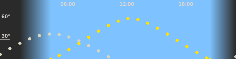 | Höchster Sonnenstand (Kulmination) | 13:15 Uhr (h = 61.6°) |