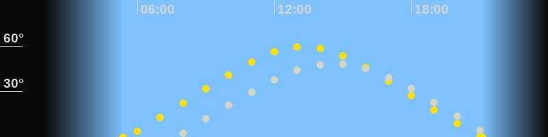 | Höchster Sonnenstand (Kulmination) | 13:16 Uhr (h = 59.7°) |