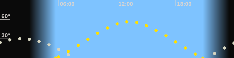 | Höchster Sonnenstand (Kulmination) | 13:16 Uhr (h = 56.5°) |