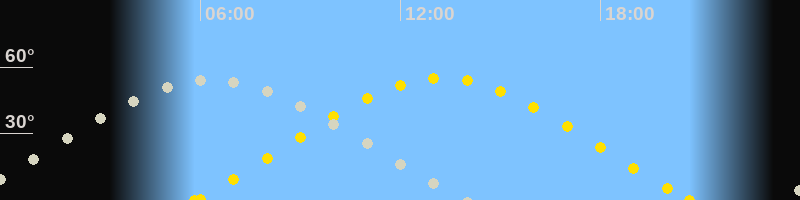 | Höchster Stand (Kulmination) | 06:15 Uhr (h=53.9°) |