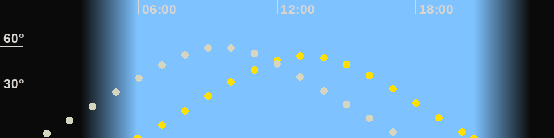 | Höchster Stand (Kulmination) | 09:30 Uhr (h=59.5°) |