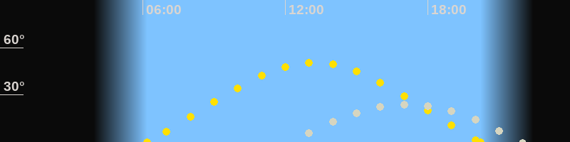 | Sonnenaufgang | 06:11 Uhr im Osten (αAz = 70.9°) |