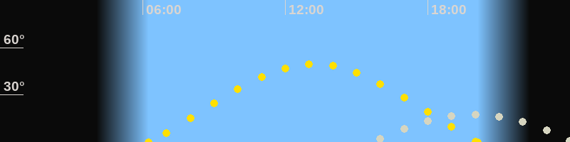 | Sonnenaufgang | 06:15 Uhr im Osten (αAz = 72.6°) |