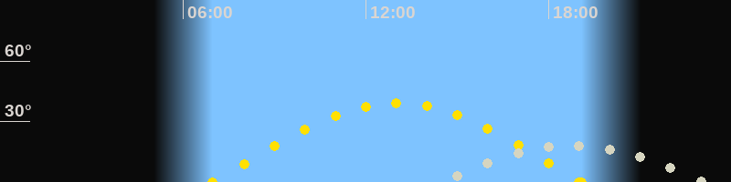 | Sonnenuntergang | 19:05 Uhr im Westen (αAz = 270.4°) |