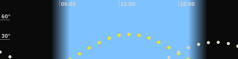 Höchster Sonnenstand (Kulmination)13:01 Uhr (h = 38°)
