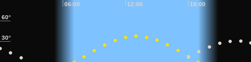 | Sonnenaufgang | 07:05 Uhr im Osten (αAz = 91.8°) |