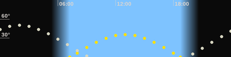 | Sonnenaufgang | 07:13 Uhr im Osten (αAz = 94.8°) |