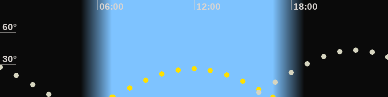 | Höchster Sonnenstand (Kulmination) | 11:54 Uhr (h = 26.5°) |