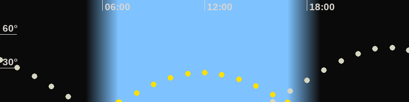| Höchster Sonnenstand (Kulmination) | 11:54 Uhr (h = 26.1°) |