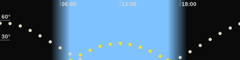 | Höchster Sonnenstand (Kulmination) | 11:53 Uhr (h = 25.1°) |