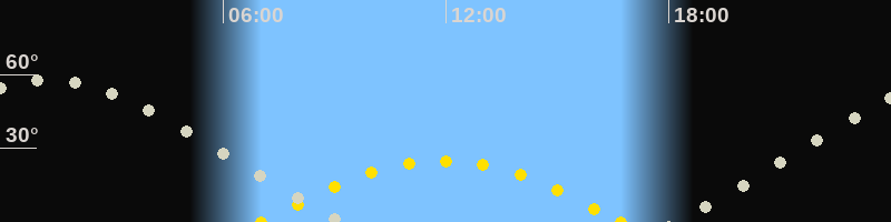 | Höchster Sonnenstand (Kulmination) | 11:53 Uhr (h = 24.8°) |