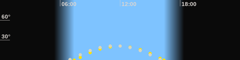 Höchster Stand (Kulmination)11:30 Uhr (h=21.4°)