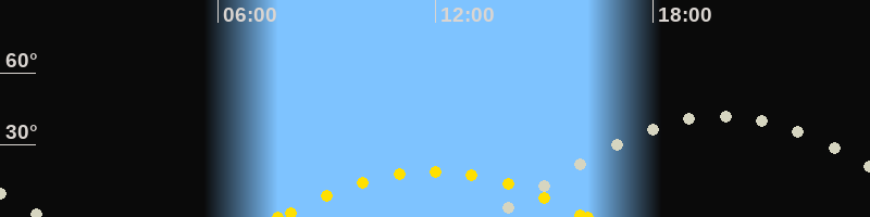 | Höchster Sonnenstand (Kulmination) | 11:56 Uhr (h = 18.9°) |