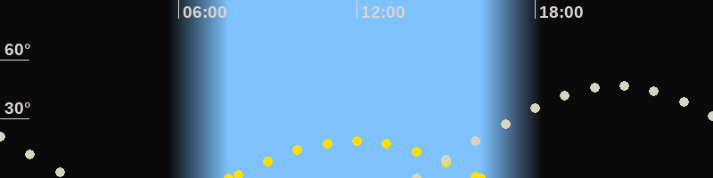 | Höchster Sonnenstand (Kulmination) | 11:56 Uhr (h = 18.7°) |