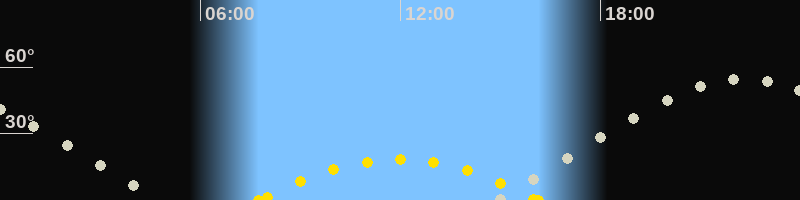 | Höchster Sonnenstand (Kulmination) | 11:57 Uhr (h = 18.3°) |